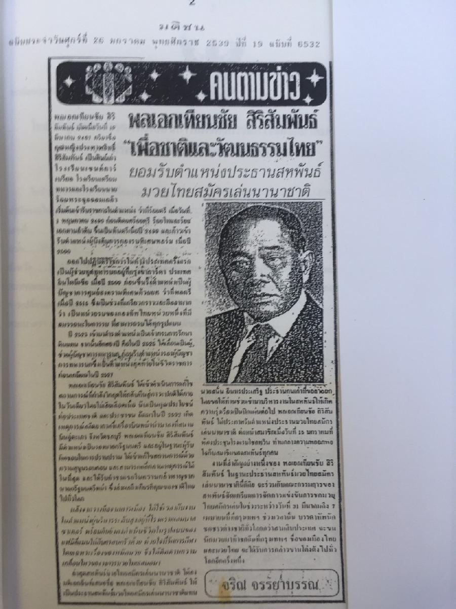 Commemorating General Thianchai Sirisamphan, President of the International Federation of Muay Thai Association